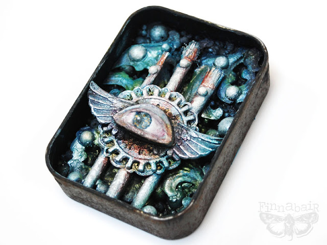 As my base I used one of Finnabair's resist canvas. It`s so amazing! You can do anything with it - it's very versatile and can be used in countless ways. You must have seen it many times, usually torn into bits and pieces serving as embellishments. I took the whole square and treated it as my base.