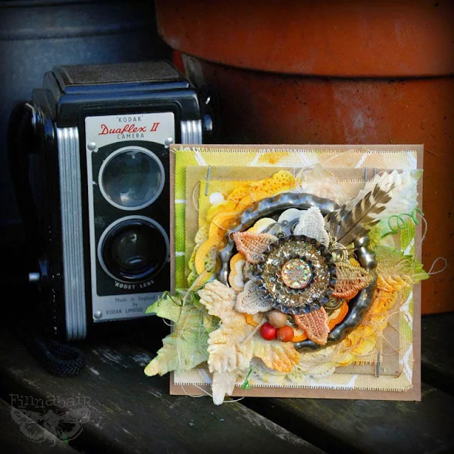 To start - you can always try with something small and simple such as Riikka's ATCs or dimensional, a bit rustic in style greeting cards - perfect for last days of Autumn. Ready? Here we go!