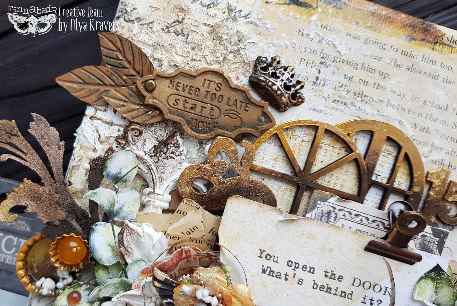 I used a collage effect for the background with a tissue paper. There are many beautiful metal embellishments, as well as a Rust Effect Paste and of course gorgeous waxes that put the finishing touches. Stay with us and get inspired!